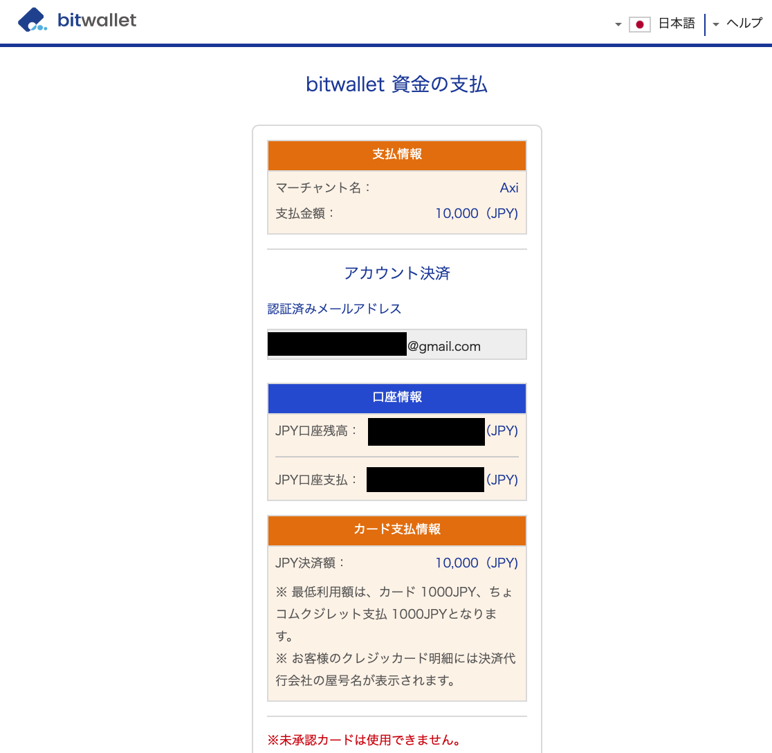 Axiの保有口座の口座建て通貨とbitwalletに入金したい法定通貨が異なる場合は、Axiがそのときの為替レートに従って自動的に両替します。