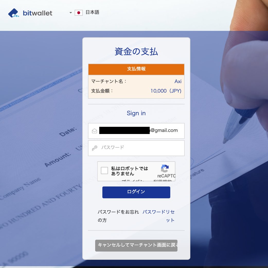 すると、以下のようにbitwalletのログイン画面に遷移します。