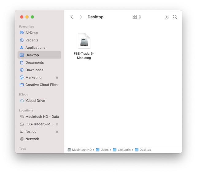 ① FBSのMac専用のMT5アプリをこちらこからダウンロードしてください。