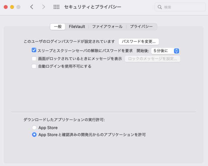 そして、鍵を開けて、「ダウンロードしたアプリケーションの実行許可」の中にある2択のうち、「App Storeと確認済みの開発元からのアプリケーションを許可」を選択してください。