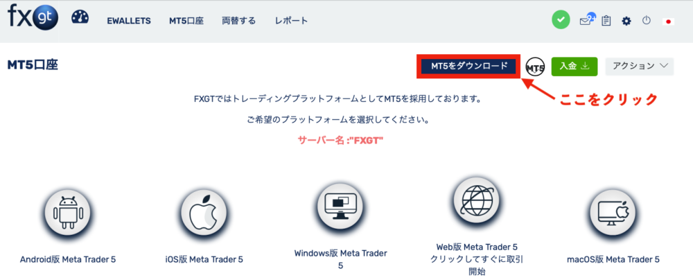 FXGTの利用者が利用しているPCやスマートフォン・タブレットのOSに適合するMT5プラットフォームをダウンロードしてください。