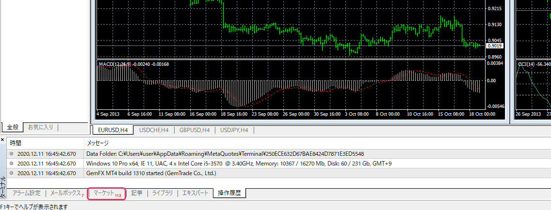 「マーケット」ではEAを無料~有料の自動売買ソフトを選べて、ダウンロードも可能です。