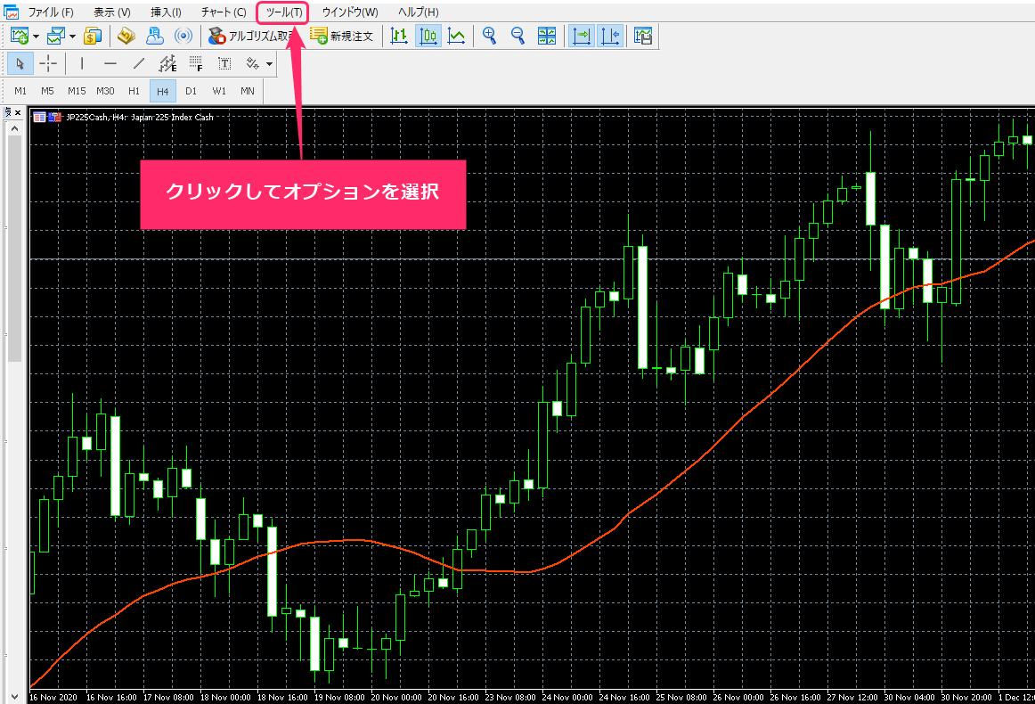 EAのON・OFFを切り替えたい場合は、画面上部にあるアルゴリズム取引をクリックしましょう。
