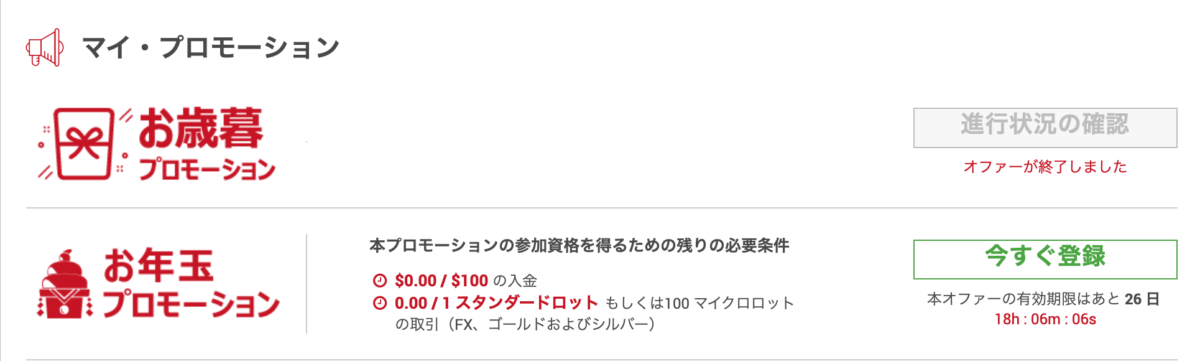 登録を完了していない状態で、取引条件を満たしてもプロモーションに参加したことにならないので、まず最初に必ず、登録手続きをしてください。