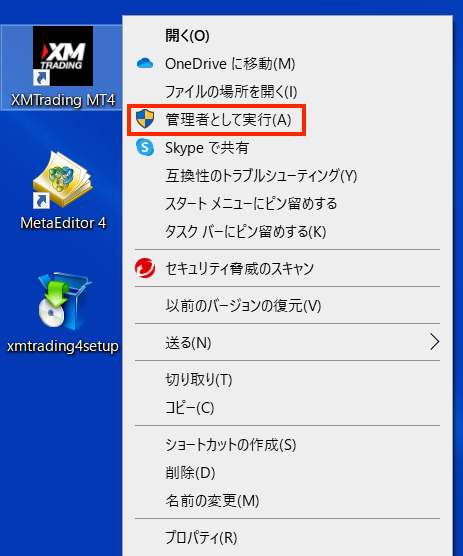 3:「管理者として実行」をクリックします。