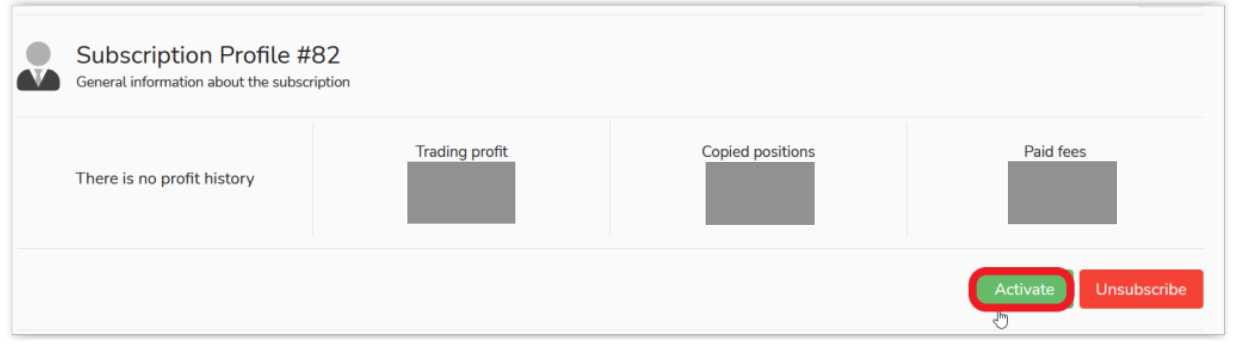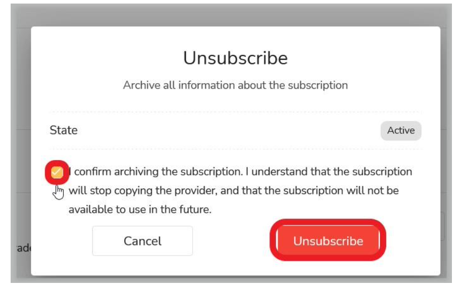Unsubscribeのボタンを押すと、フォロワーがフォローしたシグナルプロバイダーの取引を完全に解除することになります。