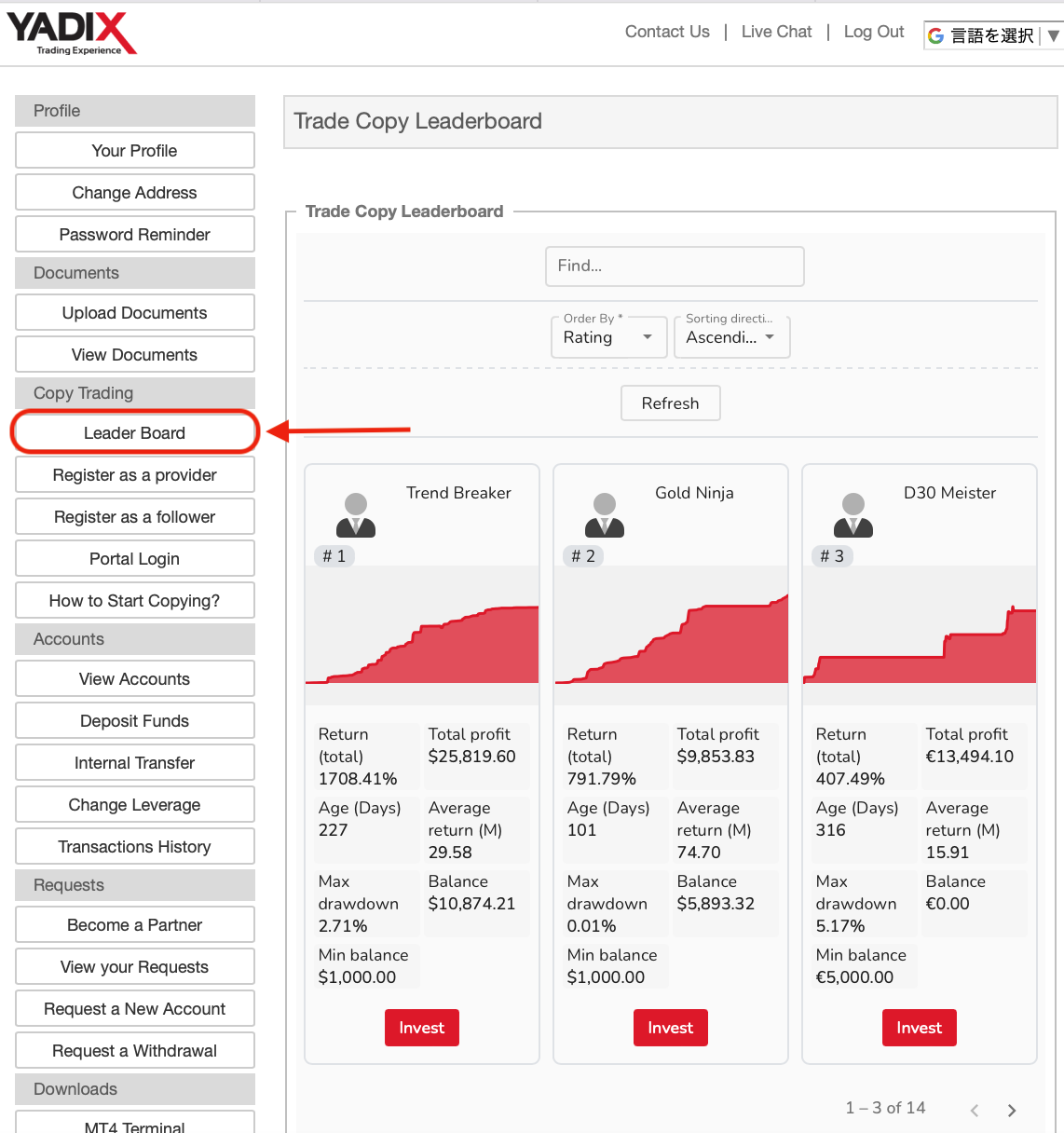 Yadixのコピートレード利用者