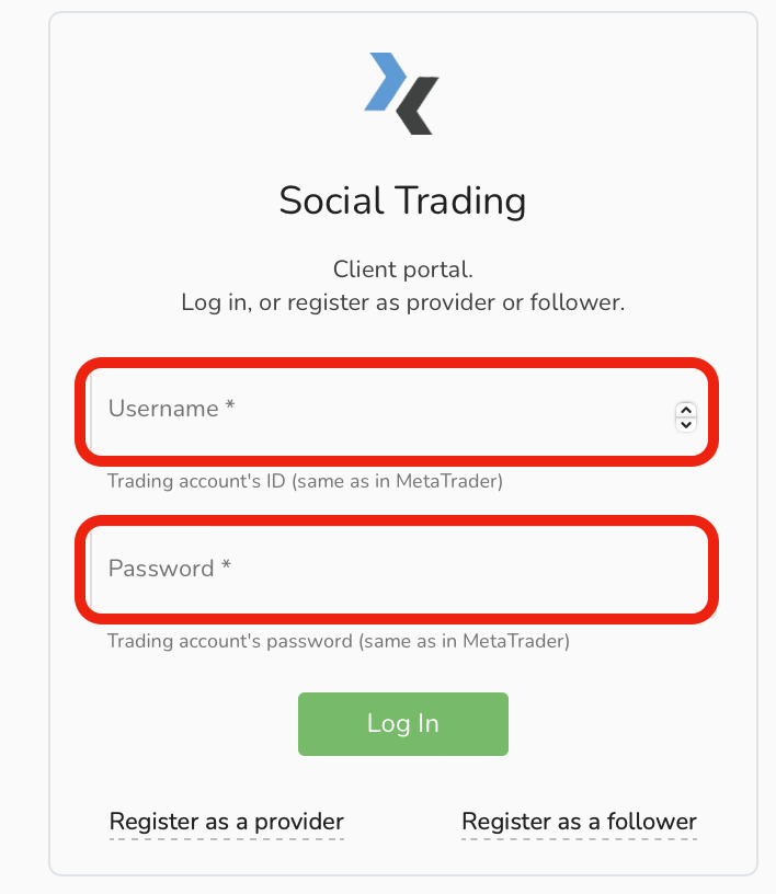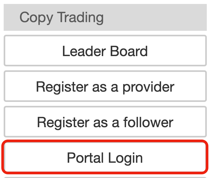 アカウントマネージャーまたはサポートチームから承認されたら、クライアントポータルからログアウトしている場合、コピートレーディングポータルにログインするだけです。