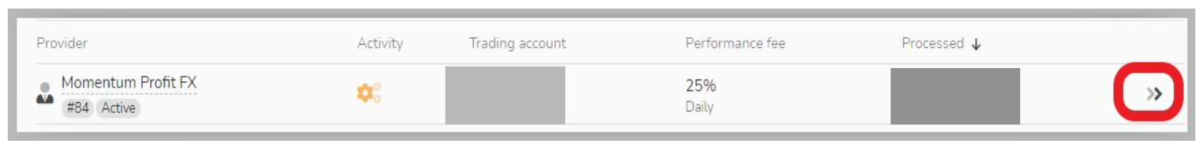 取引をコピーしたいマスタートレーダー(シグナルプロバイダー)を見つけて、「Invest」をクリックします。